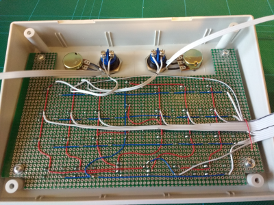 25 Buttons, Hat switch with diode's on a throw hole proto PCB. All the connection are linked up with link wire. It only needs simple methods because PCB are very expansive for a one off. --------------------------------------------------------------------------------- I got this case from ebay, it has a flat bottom with a sloped top,